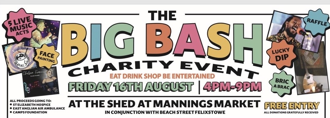 Latest booking - 16th August 6pm at the Beach Street Big Bash, Felixstowe. Click Here for show details